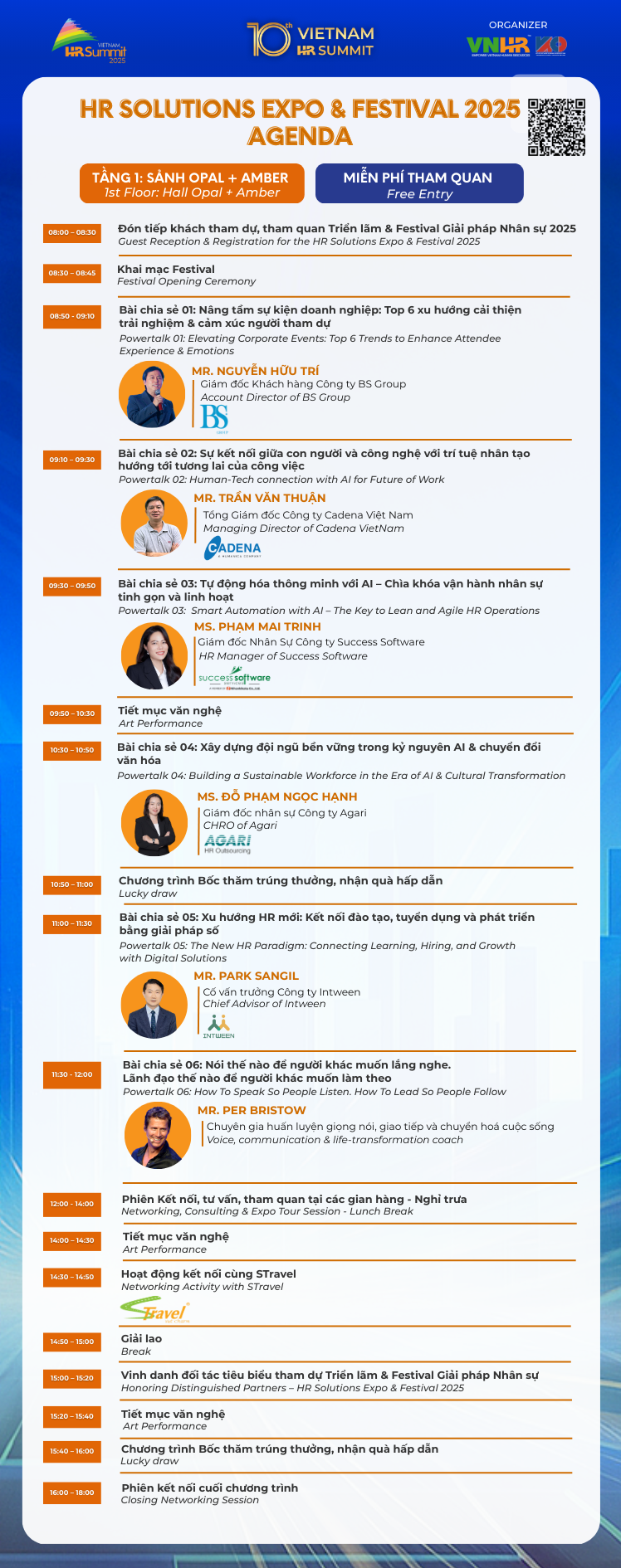 Sự kiện năm nay không chỉ là nơi kết nối hơn 1.000 lãnh đạo doanh nghiệp, chuyên gia nhân sự và các nhà cung cấp giải pháp, mà còn là không gian hội tụ của tư duy chiến lược, đổi mới sáng tạo và hành động thực tiễn. Tại đây, người tham dự sẽ cùng nhau mổ xẻ những xu hướng mới nhất trong quản trị nguồn nhân lực – từ tác động của trí tuệ nhân tạo, khả năng thích ứng văn hóa doanh nghiệp, đến năng lực lãnh đạo trong thời đại chuyển đổi số.