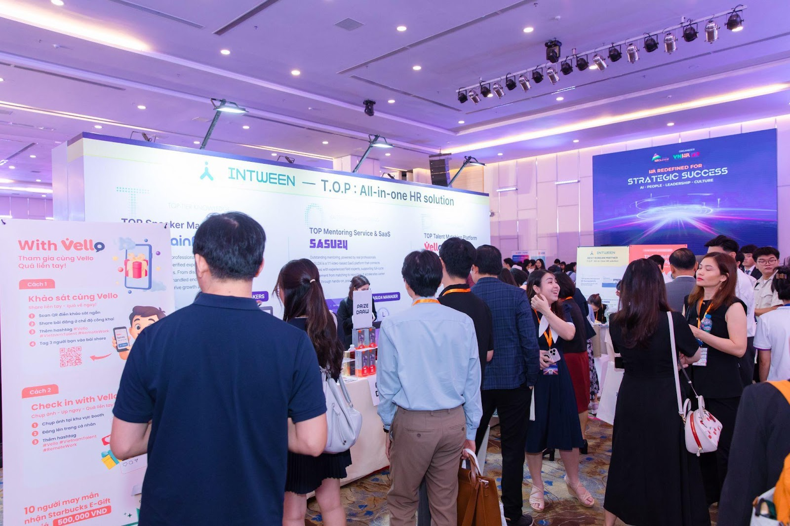 Các gian hàng dịch vụ của Intween đã thu hút sự quan tâm đặc biệt từ khách tham quan. Nhiều doanh nghiệp và chuyên gia nhân sự trực tiếp trải nghiệm sản phẩm, đặt câu hỏi và bày tỏ sự hứng thú với khả năng ứng dụng tại thị trường Việt Nam. Một số khách mời đánh giá cao tính linh hoạt của Vello cũng như tính thực tiễn của Sasu24 trong việc hỗ trợ quản lý nhân sự.